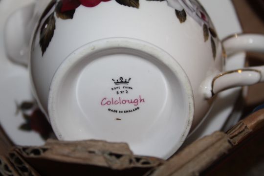 A TRAY OF COLCLOUGH 7908 ROSE PATTERN CHINA