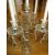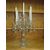 A LARGE MODERN DECORATIVE GLASS FIVE BRANCH CANDELABRA, WITH SWIRLED EFFECT CANDLE HOLDERS AND THREE TIER CRYSTAL DROPPERS, H 59.5 cm