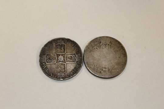 A 1708 SILVER CROWN TOGETHER WITH ANOTHER