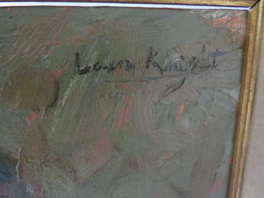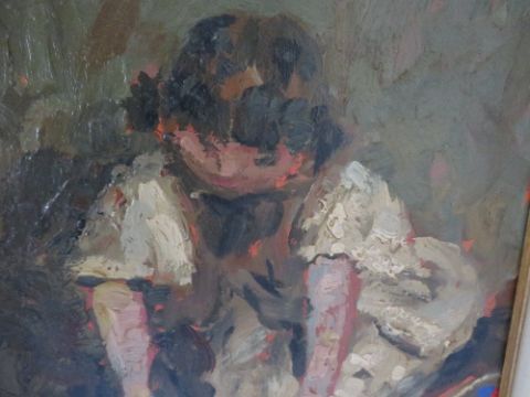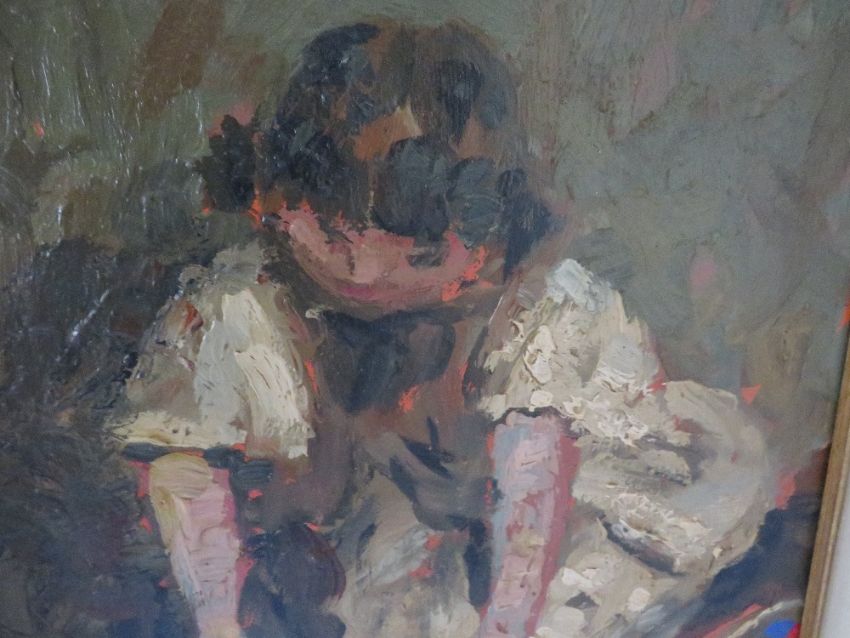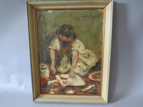 AFTER DAME LAURA KNIGHT (1877-1970). Impressionist study of a young girl painting, bears signature upper right, oil on canvas, framed, 40 x 29 cm