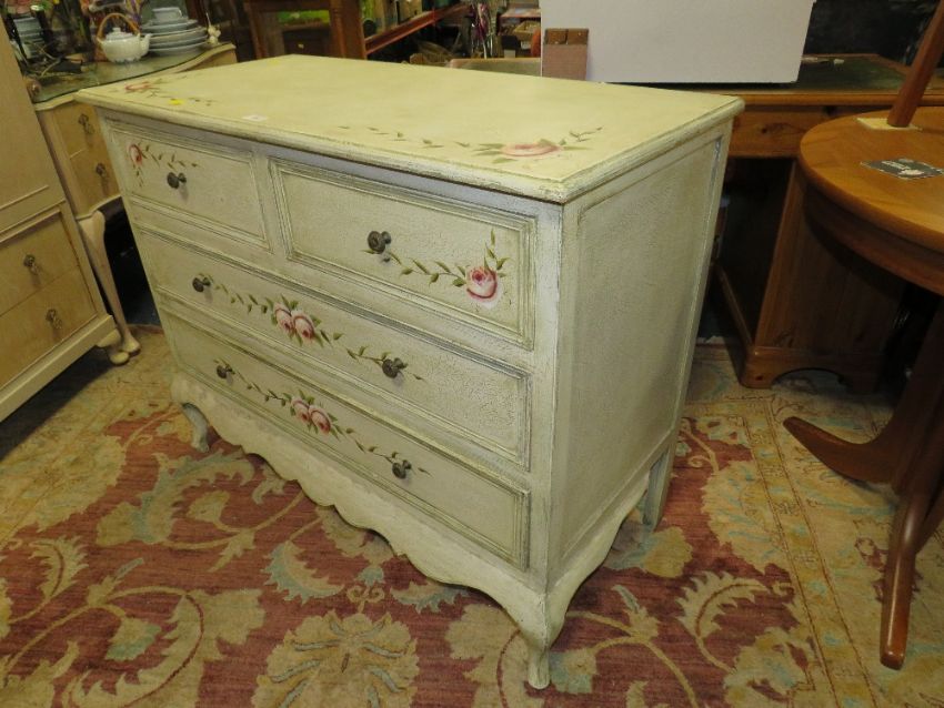 A CONTEMPORARY FRENCH STYLE PAINED FOUR DRAWER CHEST H-85 W-104 CM