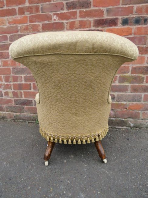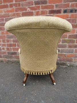 AN ANTIQUE BEDROOM CHAIR WITH CONTEMPORARY UPHOLSTERY