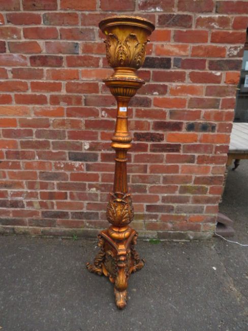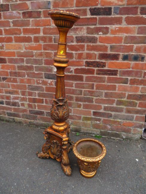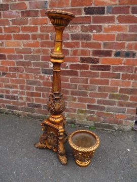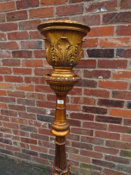 A LARGE CONTEMPORARY GILT JARDINAIRE ON STAND H-159 CM S/D