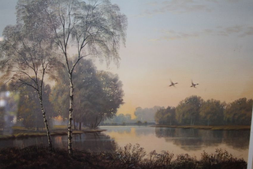 A PAIR OF GILT FRAMED AND GLAZED SIGNED GERALD COULSON PRINTS ENTITLED 'COUNTRY LIFE' AND 'SUMMER REFLECTIONS' 50CM X 40CM