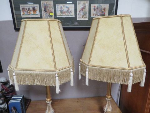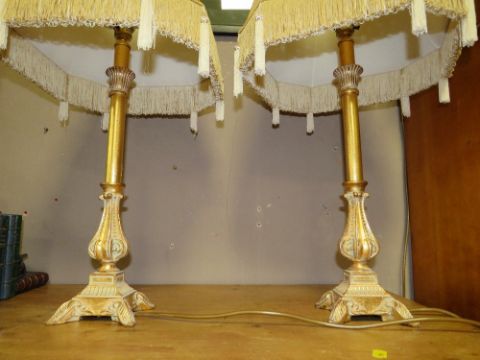 A PAIR OF CONTEMPORARY GILT TABLE LAMPS WITH SHADES