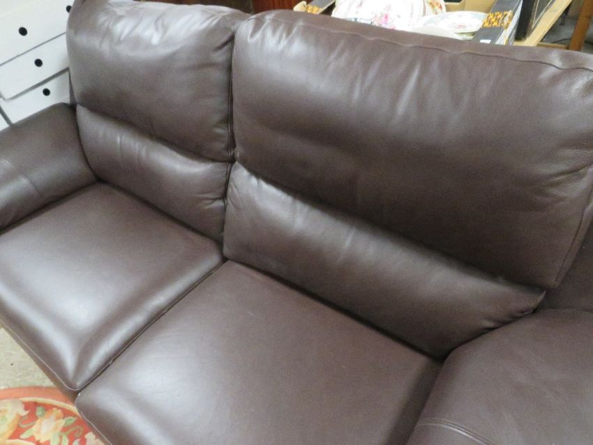A PAIR OF MARKS & SPENCER BROWN LEATHER RECLINER SOFAS IN GOOD CONDITION W-200 CM (2)