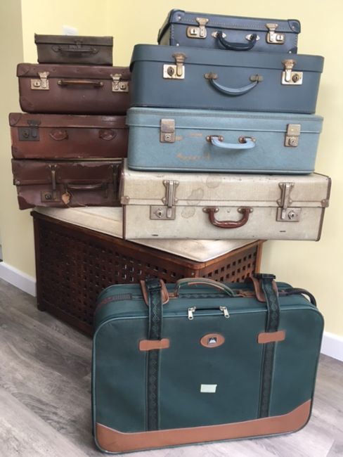 9 VINTAGE SUITCASES, OF VARIOUS SIZES AND AGE