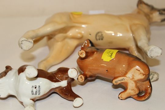 THREE BESWICK DOG FIGURES - GREAT DANE, DACHSHUND AND BULLDOG