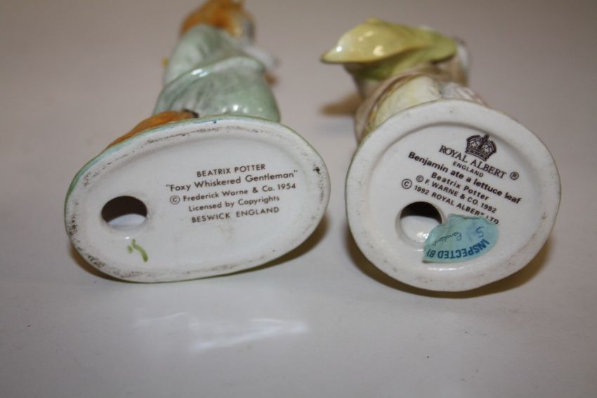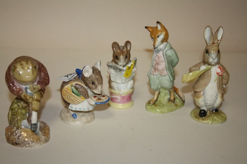 A COLLECTION OF FIVE BESWICK BEATRIX POTTER FIGURES, TO INCLUDE A GOLD STAMPED TAILOR OF GLOUCESTER EXAMPLE