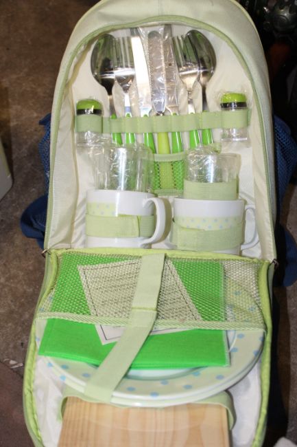 A MIXED LOT TO INCLUDE A CASED DEWALT SAW, SPOTTING SCOPE, PICNIC BACKPACK, WATERS, POWER LEADS, MULTI-SOCKETS ETC