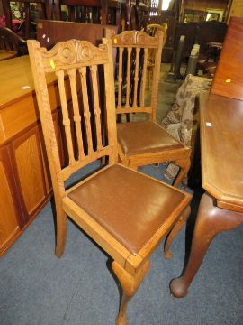 AN EARLY 20TH CENTURY MAHOGANY WIND-OUT DINING TABLE WITH ONE SPARE LEAF - WINDER - WITH FOUR CHAIRS