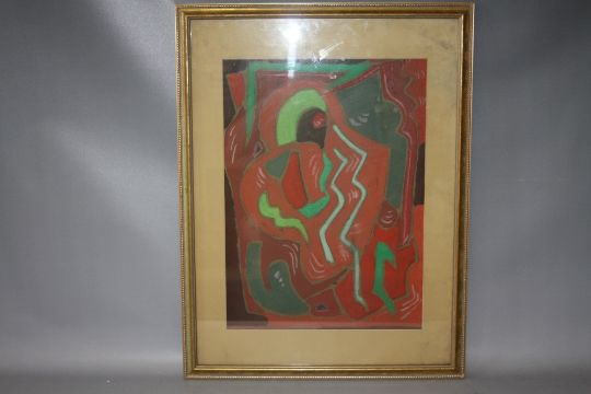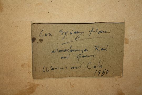 SCHOOL OF EVIE SYDNEY HONE (1894-1955). Abstract composition 'Warm & Cold', see inscription verso, bears signature lower right, watercolour, framed and glazed, 46 x 34 cm