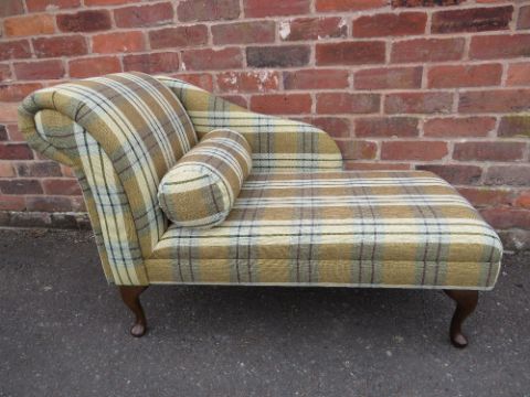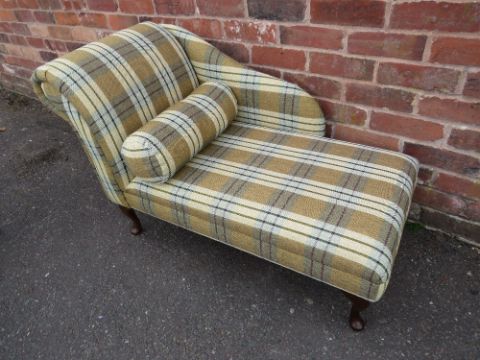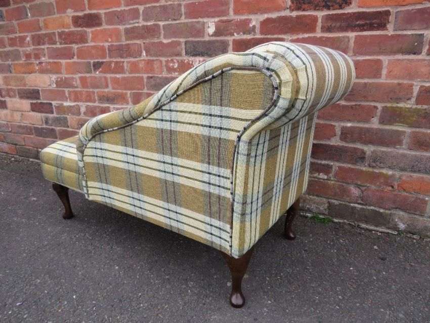 A MODERN CHECKED SMALL CHAISE LONGUE W-110 CM