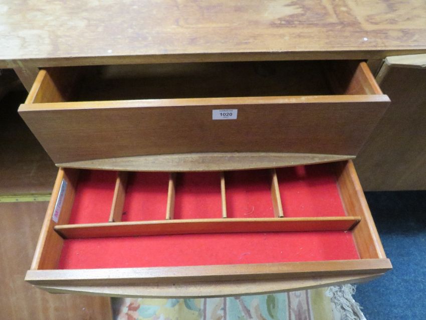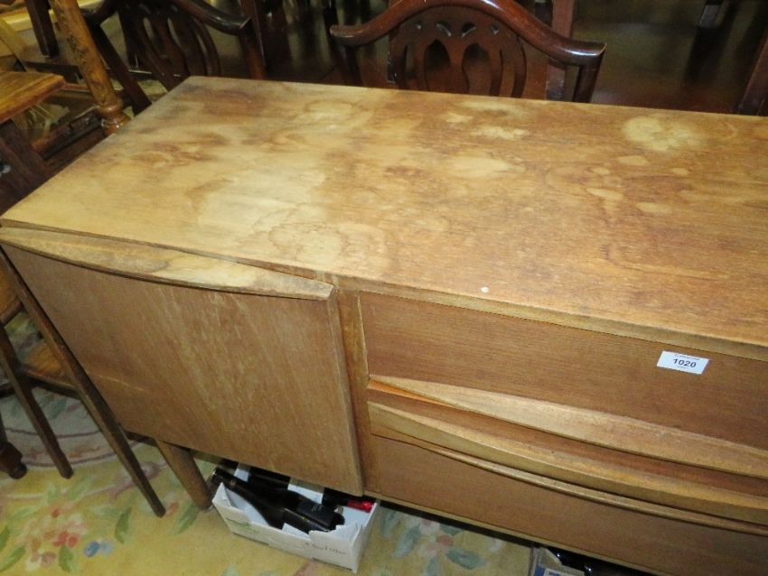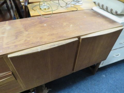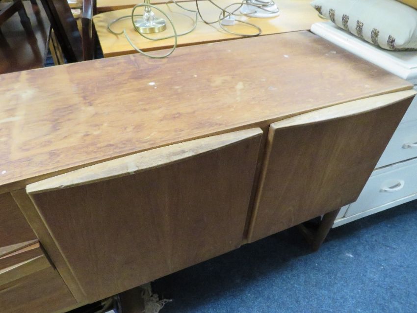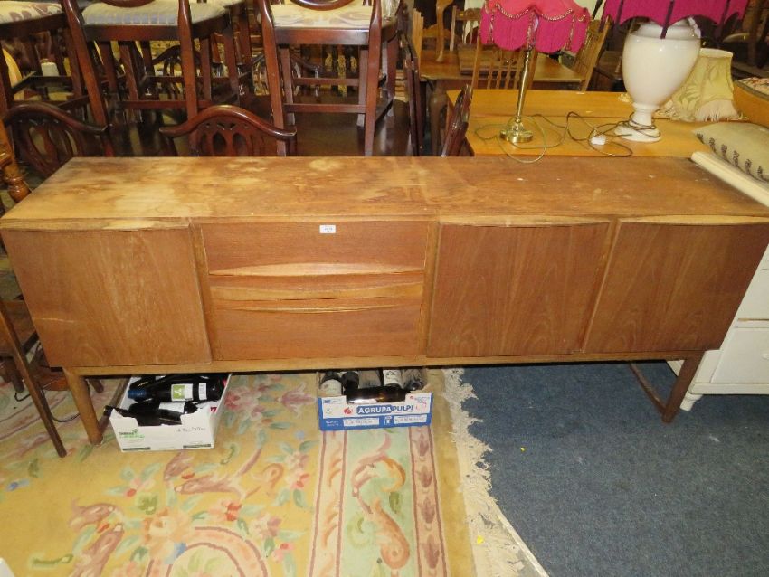 A RETRO 'A.H. McINTOSH & Co Ltd' TEAK SIDEBOARD IN NEED OF RESTORATION H-81 W-202 CM A/F