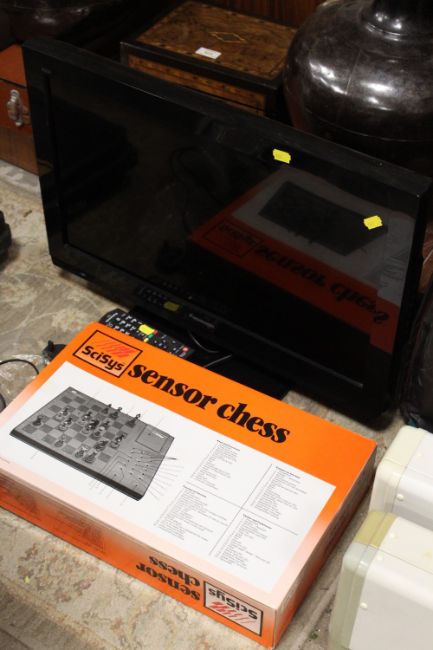 A PANASONIC TV WITH REMOTE PLUS A BOXED SCISYS ELECTRIC CHESS SET