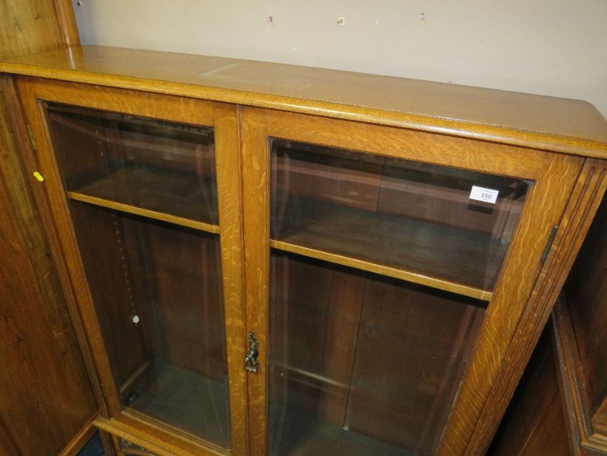 A VINTAGE OAK GLAZED BOOKCASE H-141 W-121 CM