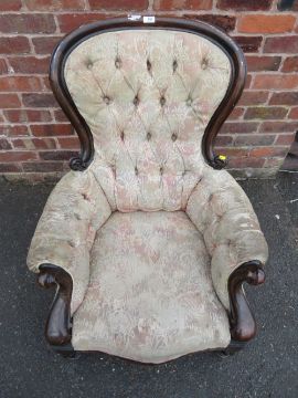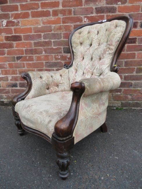 AN ANTIQUE MAHOGANY FRAMED GENTLEMANS ARMCHAIR