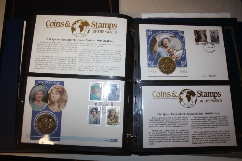 SIX ALBUMS OF THE ROYAL FAMILY COLLECTION FIRST DAY COVERS AND FIRST DAY COIN COVERS