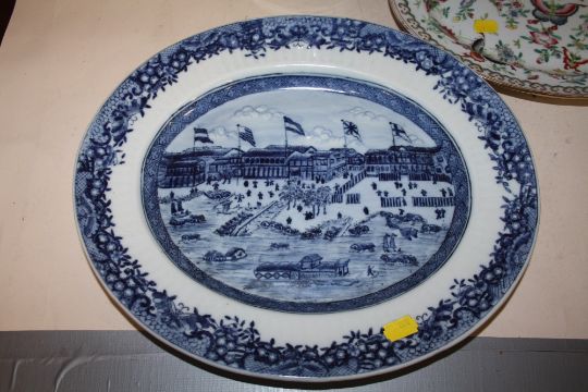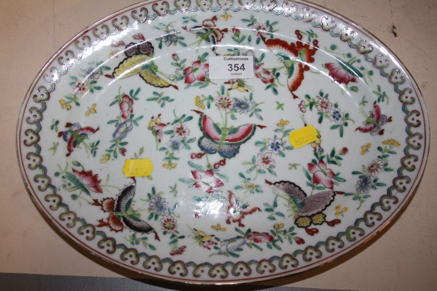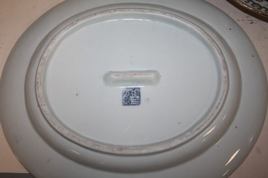 A COLLECTION OF CHINESE AND ORIENTAL CERAMICS TO INCLUDE OVAL DISHES, TOGETHER WITH A BRONZE EFFECT SPECIMEN VASE (6)