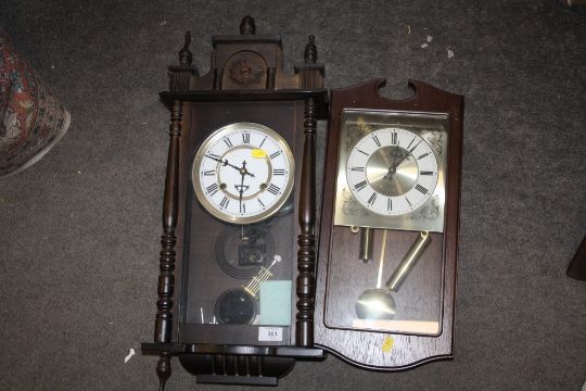 TWO VINTAGE WOODEN WALL CLOCKS