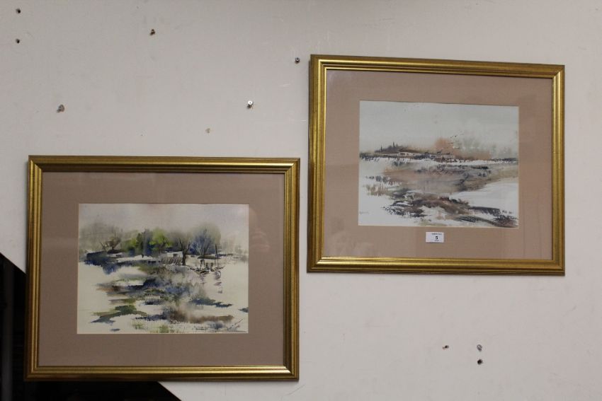 A PAIR OF FRAMED AND GLAZED SOUTH AFRICAN LANDSCAPE WATERCOLOURS SIGN JUAN MOLLMANN 34 CM BY 26 CM