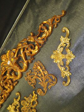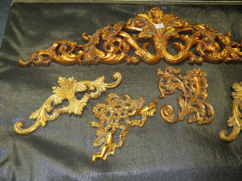 A LARGE GILT PIERCED SURMOUNT L-127 CM WITH FOUR SMALLER GILT PANELS(5)