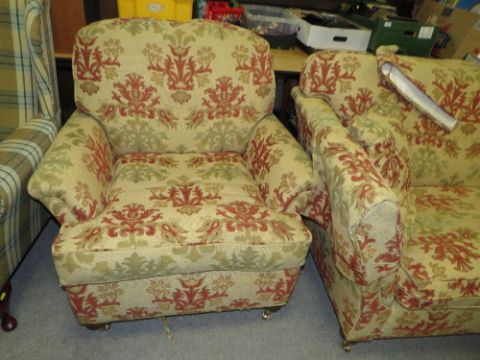 A MODERN UPHOLSTERED THREE SEATER SOFA AND ARMCHAIR - PET SCRATCHES TO BASES