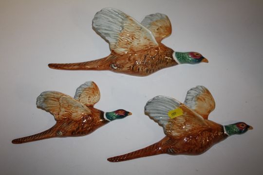 A SET OF THREE BESWICK WALL HANGING GRADUATED FLYING PHEASANTS