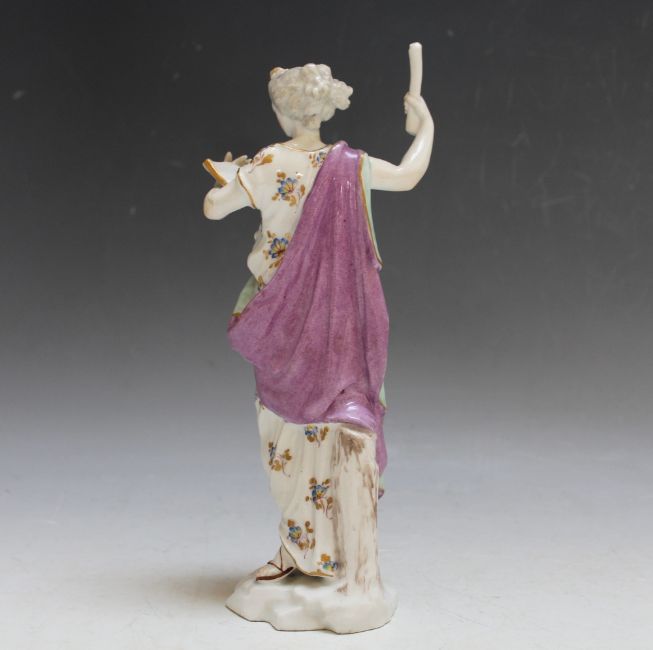 AN ANTIQUE HARD PASTE FIGURINE, as a female figure reading from a book, in the style of Serves, marks to base, H 22 cm