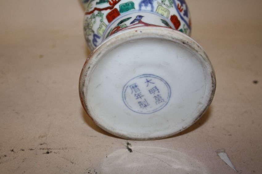 A CHINESE/ORIENTAL CERAMIC VASE, WITH SIX FIGURE CHARACTER MARK TO BASE, AND DRAGON DETAIL, H 24 CM