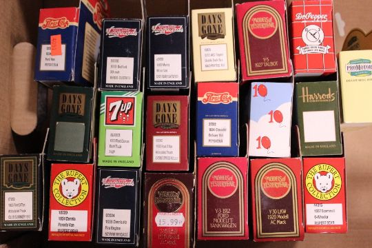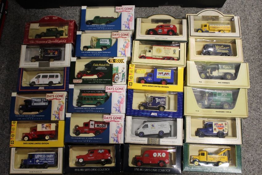 A TRAY OF BOXED DIE CAST MODEL TOY CARS AND VEHICLES TO INCLUDE DAYS GONE BY, MODELS OF YESTERYEAR ETC. (APPROX 70)