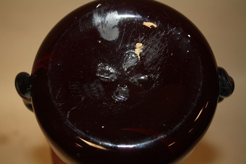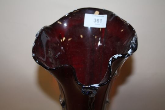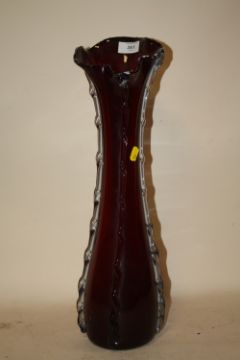 A LARGE MURANO STYLE STUDIO GLASS VASE WITH MOTTLED GLASS RIM AND PONTIL MARKINGS TO BASE, H 53 CM