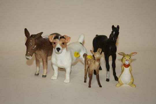 A COLLECTION OF BESWICK ANIMAL FIGURES TO INCLUDE A JACK RUSSELL TERRIER, A FAWN AND A DONKEY ETC