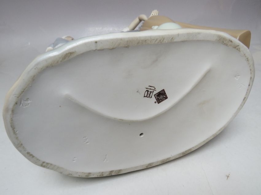 A LARGE NAO FIGURINE OF TWO LADIES COLLECTING WATER, H 39 cm, S/D