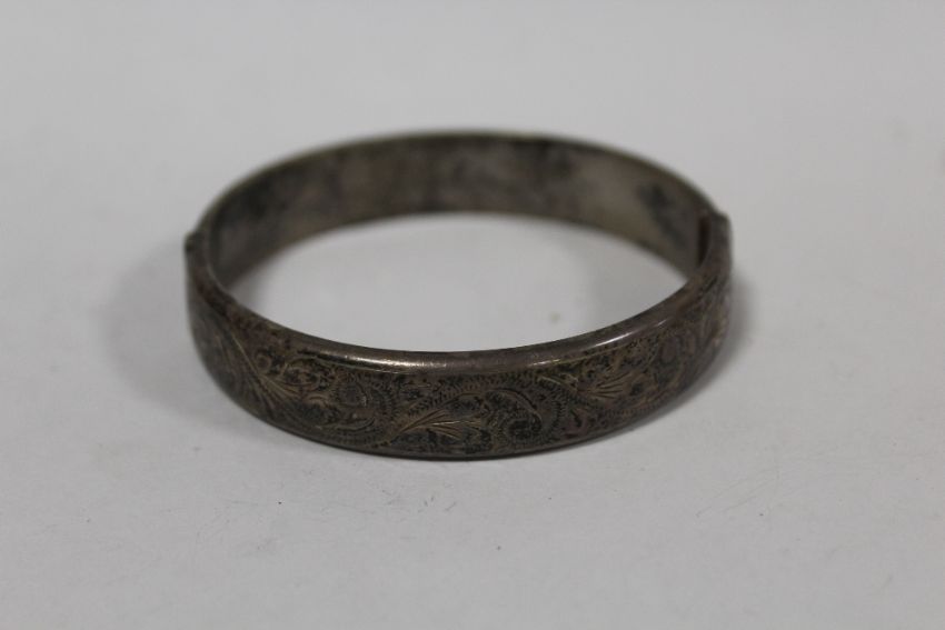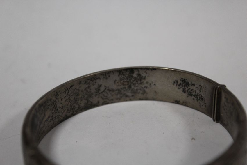 A VINTAGE ENGRAVED HALLMARKED SILVER BANGLE