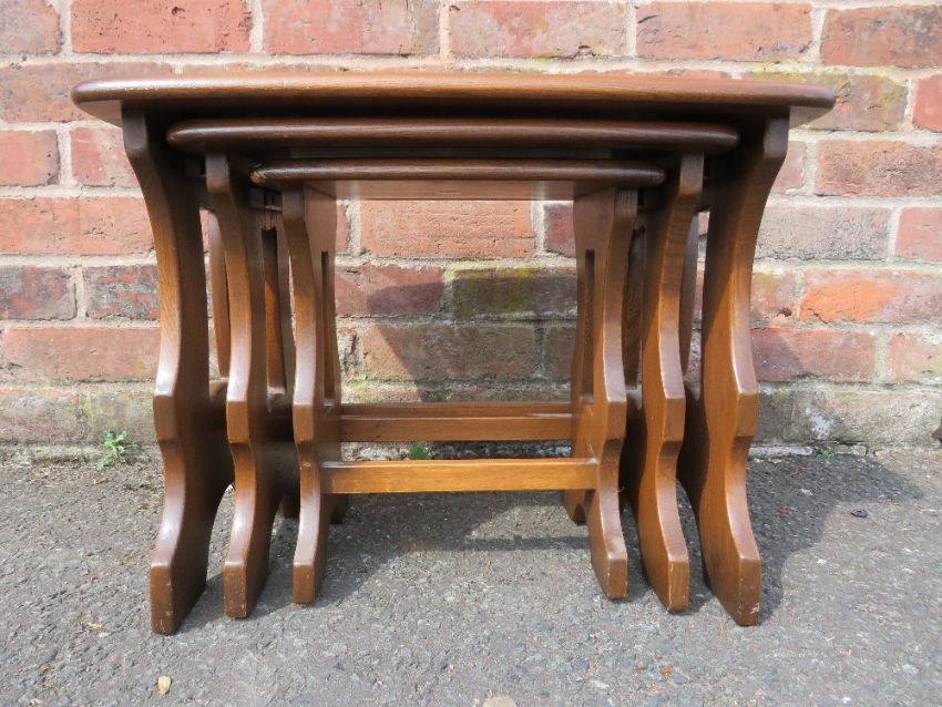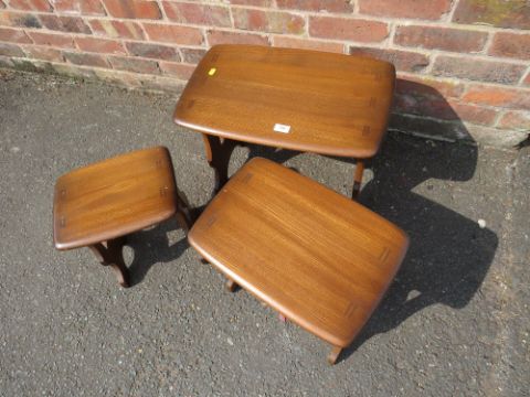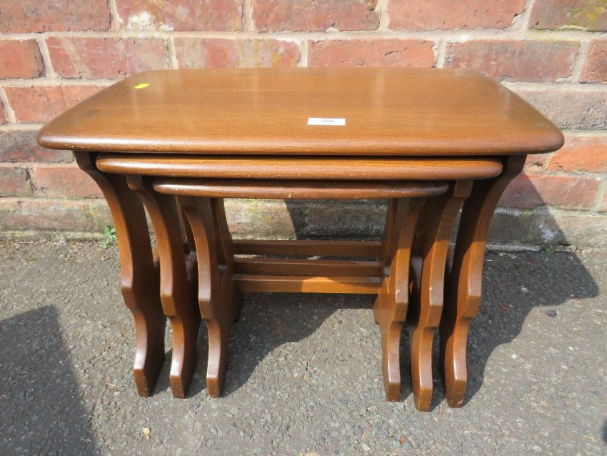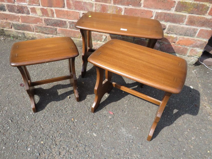 AN ERCOL NEST OF THREE TABLES H-42 W-57 CM (LARGEST)