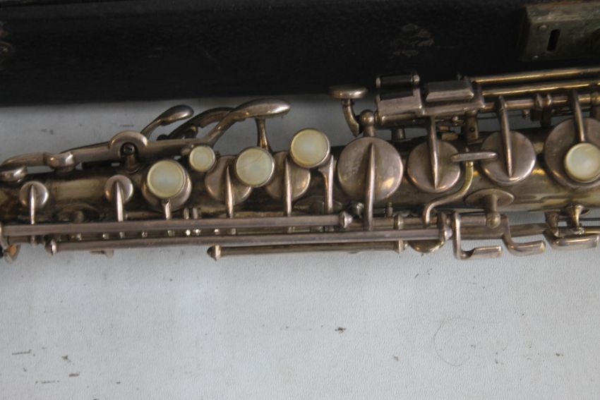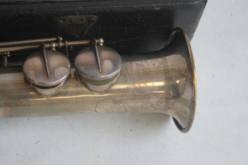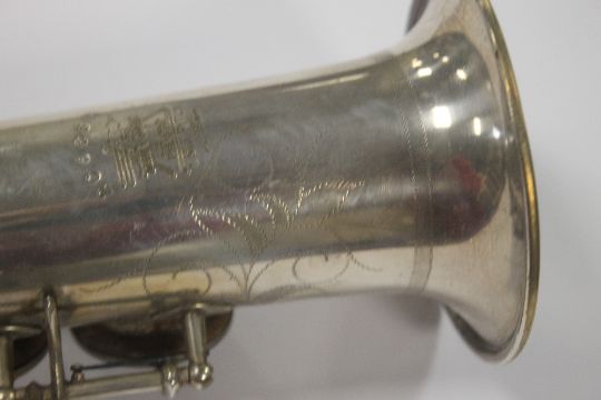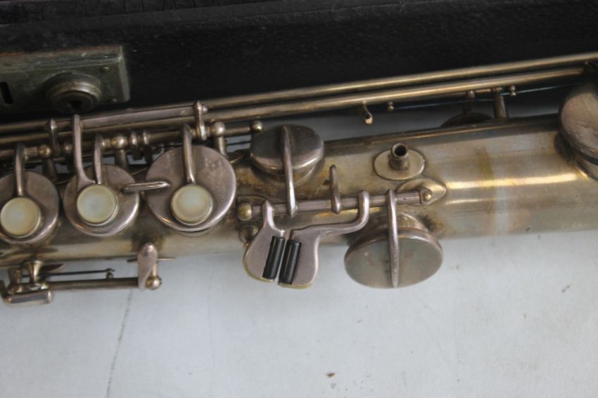 A CASED TRUE TONE SOPRANO SAXOPHONE (LOW PITCH) MADE BY BUESCHER ELKHART, Serial number 206369, made 1913-1914