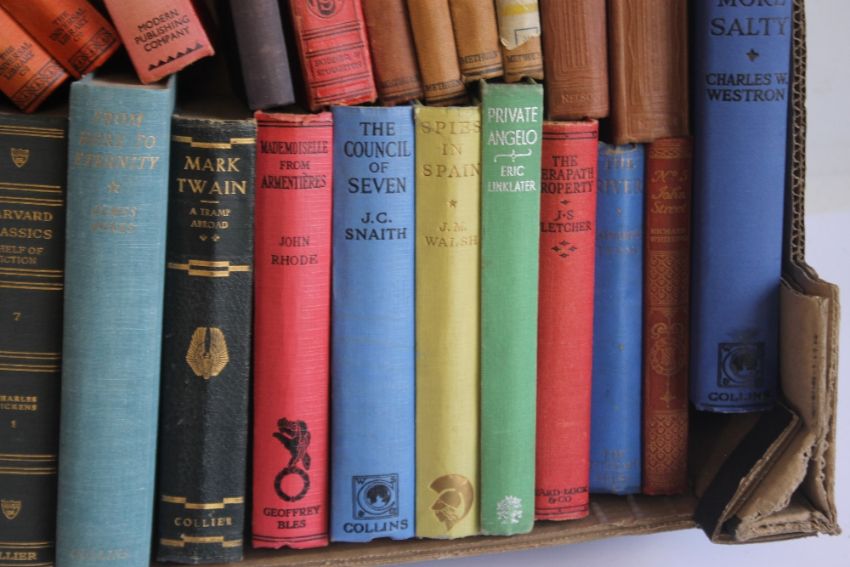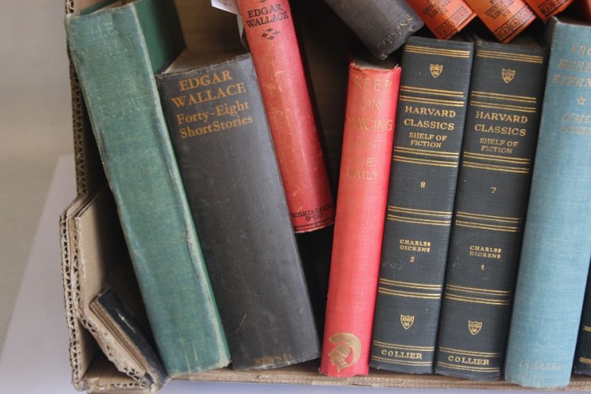 A TRAY OF VINTAGE HARDBACK NOVELS to include Edgar Wallace - 'Forty-eight Short Stories' published by George Newnes Ltd. nd, various other Edgar Wallace, Edgar Rice Burroughs, classics etc. (29)