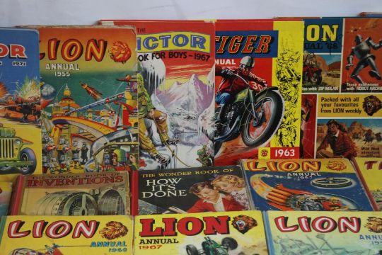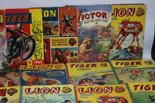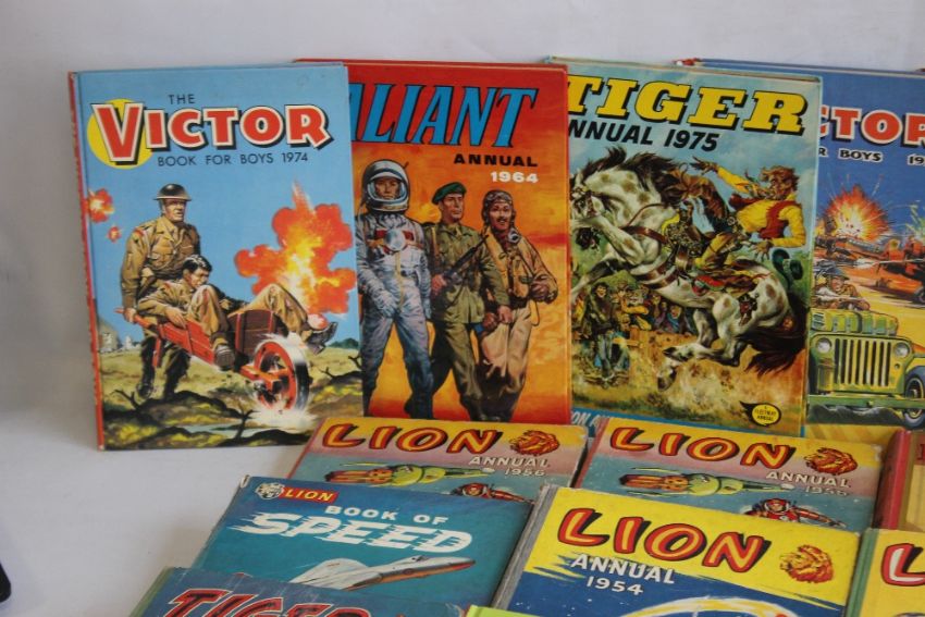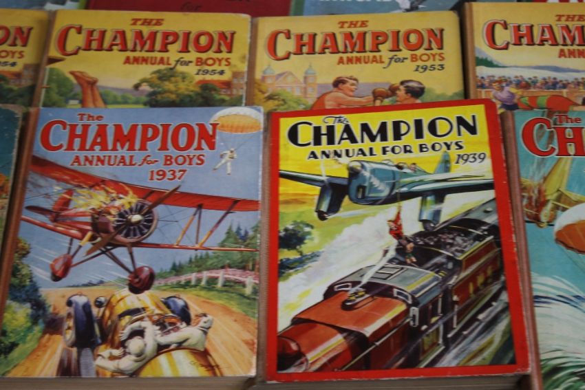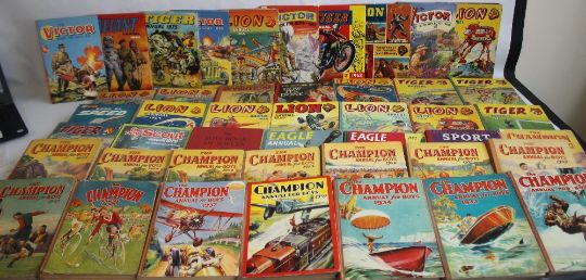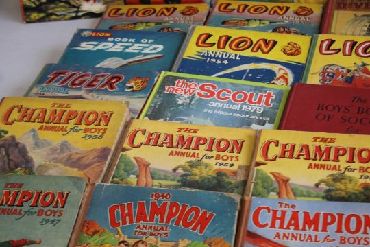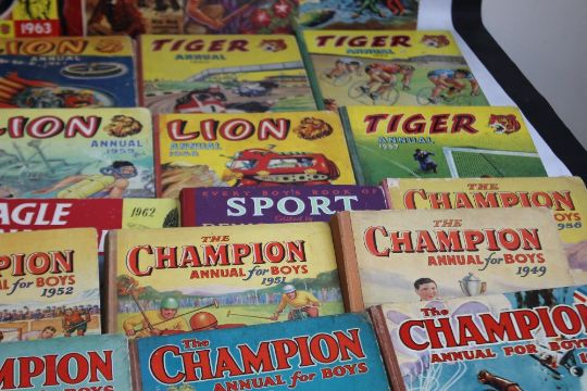 A COLLECTION OF 1930S, 1940S AND 1950S BOYS' ANNUALS to include 'The Champion Annual for Boys' 1932, 1933, 1934, 1937, 1939, 1940, 1947, 1949, 1951, 1952, 1953, 1954 (x 2), 1956 (x 2) (15), together with various issues of 'Tiger Annual', 'Lion Annual', 'The Victor Book for Boys' etc., various conditions (45 in total)