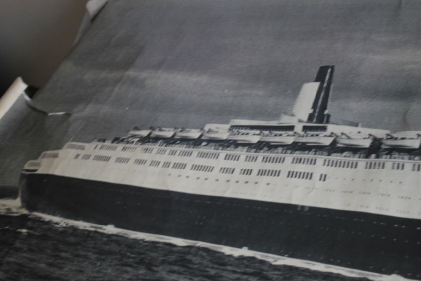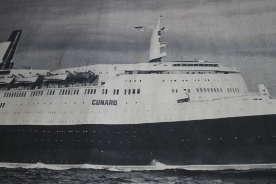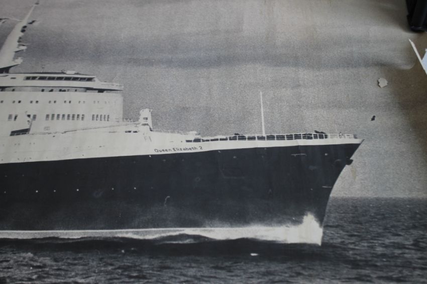 A LARGE CUNARD QUEEN ELIZABETH II PHOTOGRAPH OF THE OCEAN LINER, of large proportions 97 cm x 166 cm