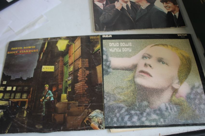 LP RECORDS TO INCLUDE THE BEATLES 'WHITE ALBUM', 'HELP', 'ROCK & ROLL VOL. I', David Bowie 'Ziggy Stardust', 'Hunky Dory', Diana Ross, Elvis Presley, Hollies, Beach Boys etc. (approx. 100)
