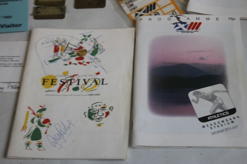 COMMONWEALTH GAMES INTEREST 1986 ITEMS, to include a staff id tag, staff pass, a quantity of official programmes etc