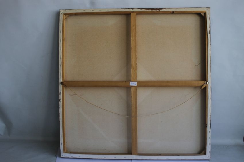 A LARGE ABSTRACT OIL ON CANVAS, signed 'Nacope', 91 x 90 cm