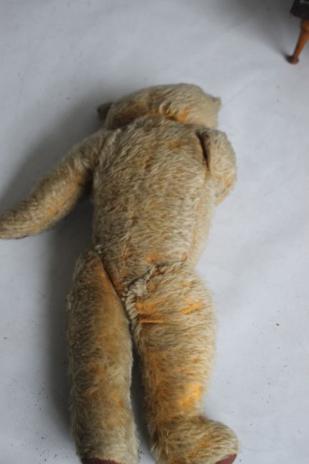 A CHILD'S TOY PIANO TOGETHER WITH A VINTAGE TEDDY BEAR, a Russ teddy bear, a Leosco meerkat and a Natwest teddy bear.