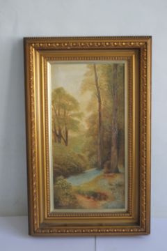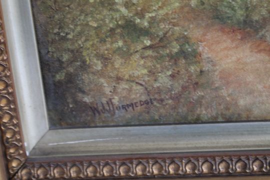A FRAMED OIL ON CANVAS OF A WOODLAND SCENE SIGNED "W. FURMEDGE", 68 x 43 cm