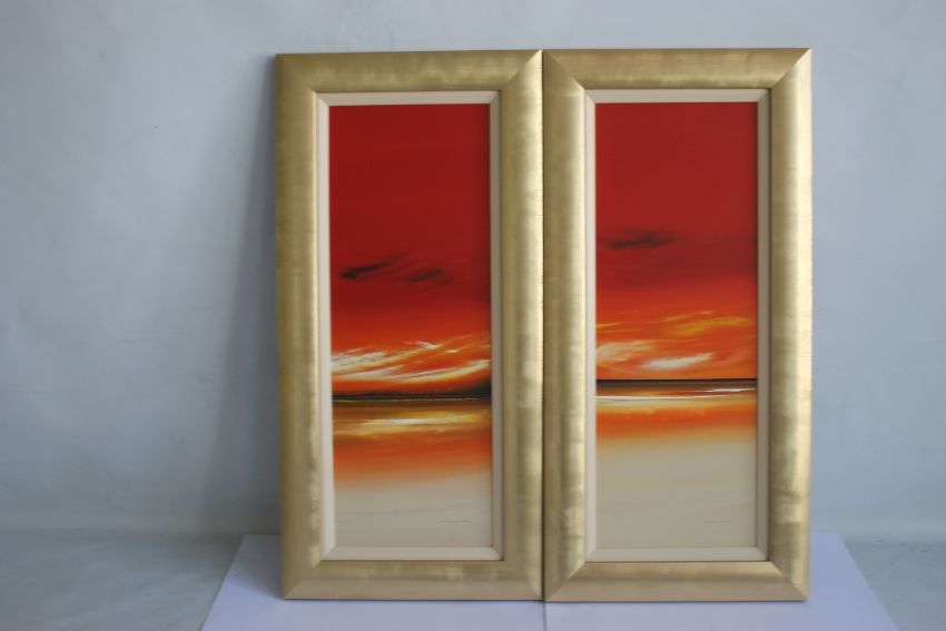 JONATHAN SHAW, a pair of oil on board paintings, seascapes, signed lower right, 74 x 36 cm including frames
