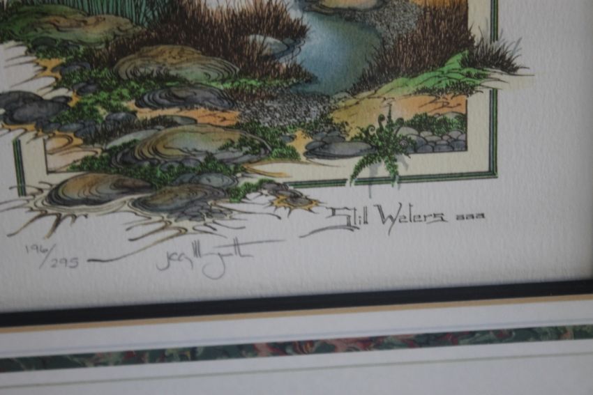 GRAHAM ILLINGWORTH, a pair of Limited Edition silk screen prints entitled 'Still Waters' and 'River Bank', both 196/295 signed by artist, 47 x 47 cm including frames, Halcyon Gallery, Birmingham labels on reverse of frames