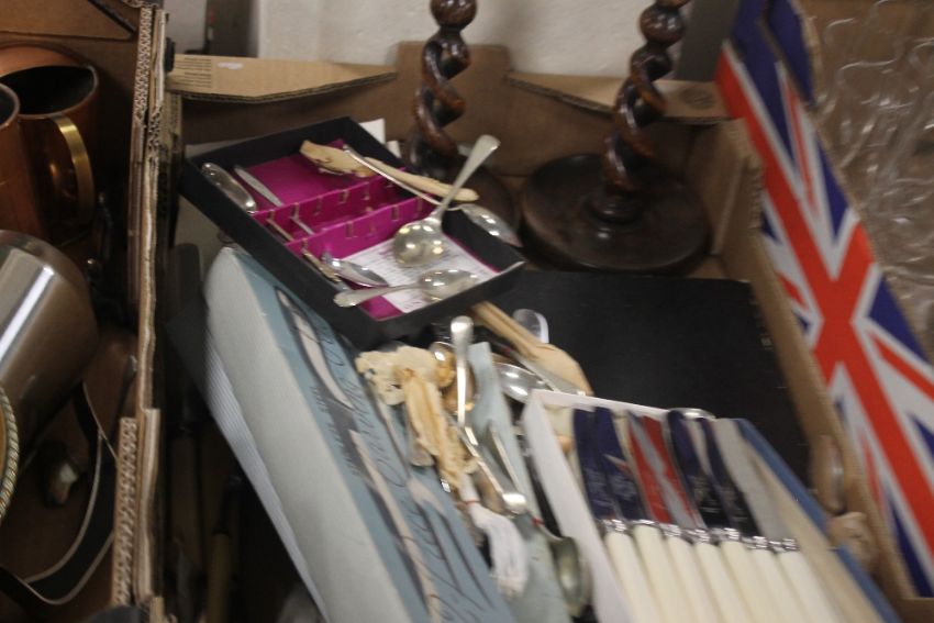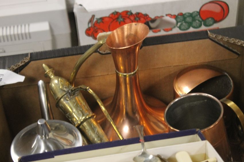 TWO TRAYS OF METALWARE ETC. (trays not included)