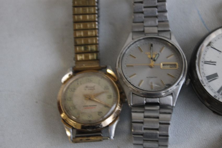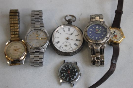 A SILVER OPEN FACE POCKET WATCH BY "KENDALL AND DENT", together with a small quantity of wrist watches