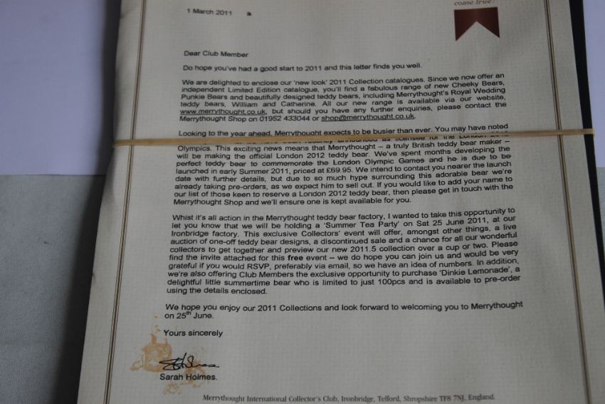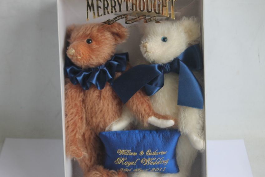 MERRYTHOUGHT WILLIAM AND CATHERINE ROYAL WEDDING BEARS 2011, boxed limited edition 91/100 with two Collector's Catalogues